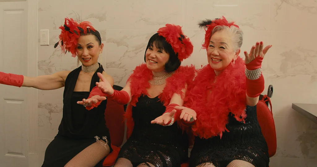 除了待在旧金山,柯比还跟着经纪公司到处演出,慢慢地跳到了紫禁城夜总会的首席舞者。杨圆圆的镜头纪录了舞团的另一位成员方美仙(Cynthia)回忆自己10岁的时候,第一次在紫禁城夜总会看到柯比的表演:“关于那场演出我只记得一个画面,柯比一边侧着身子跟观众献飞吻,一边唱着‘再来,再来,再来’。”
