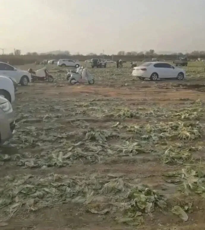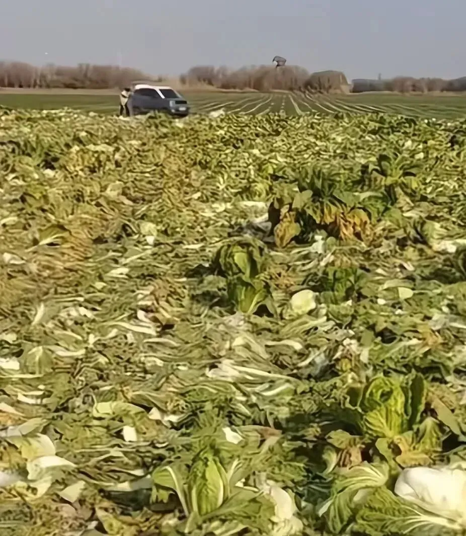 现场流传的视频显示,很多人携带麻袋、驾驶电动车,部分人甚至开着货车进入菜地,集中采摘白菜。人潮退去,菜地里一片狼藉。种植户李先生介绍,这些白菜早已联系好销售渠道,正计划陆续采收上市,没想到因此事遭受巨大损失。他表示,白菜地旁边还有200多亩玉米尚未收割,为防止类似哄抢情况发生,已连夜组织人员对玉米进行抢收。