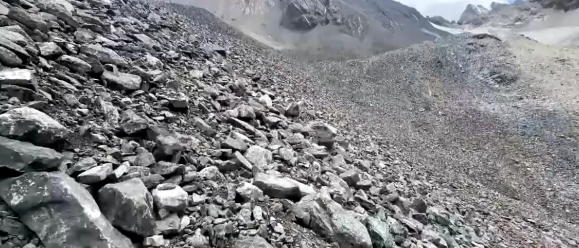 2022年7月,丘女士与当时的男友(现在的丈夫)以及朋友一起来新疆旅游,徒步乌孙古道期间,看到天堂湖附近一处石滩特别壮观,就把手机放在石头上拍摄了一段特写镜头。