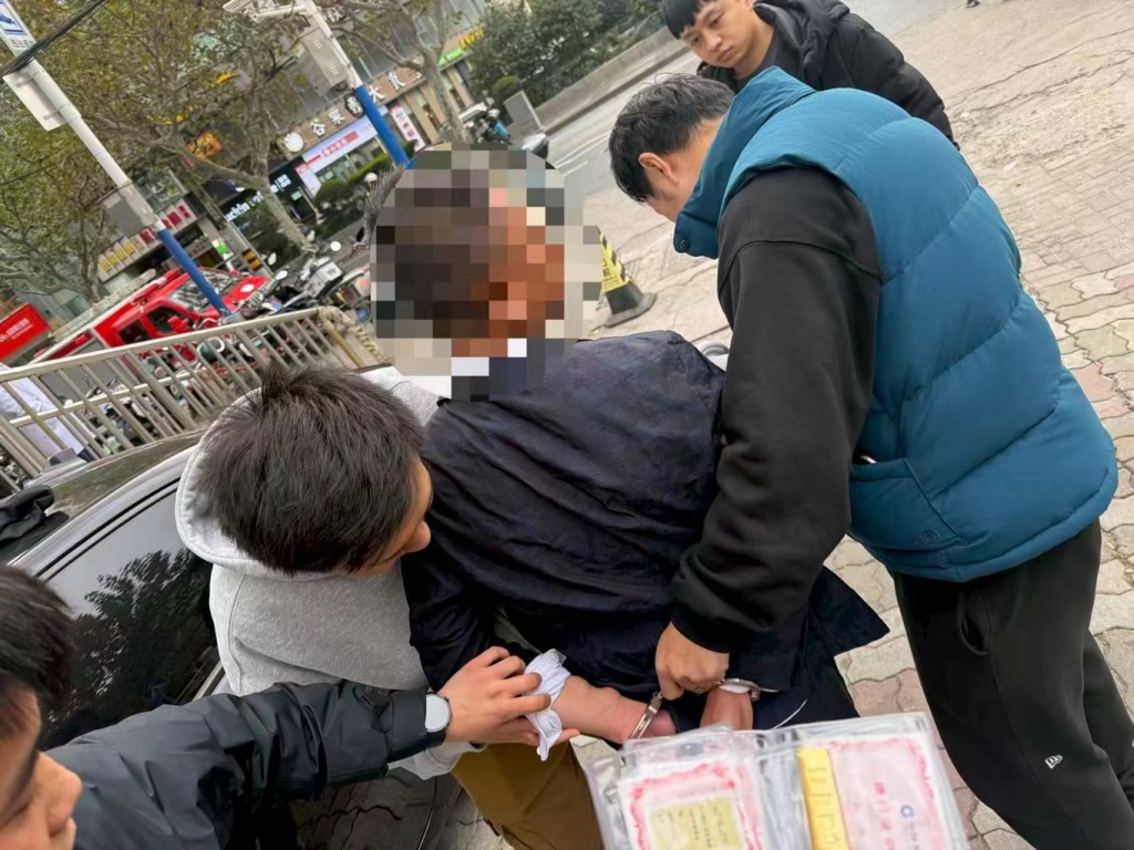 12月2日上午,民警发现杨阿姨独自离开住所,表情紧张。果不其然,民警发现杨阿姨与一名陌生男子碰面后,立即上前低声交谈,随后便将装有黄金的包裹递交给对方。就在黄金交接完成的瞬间,早已埋伏在周边的民警迅速合围,将该陌生男子当场控制,成功从其身上查获涉案黄金250克。