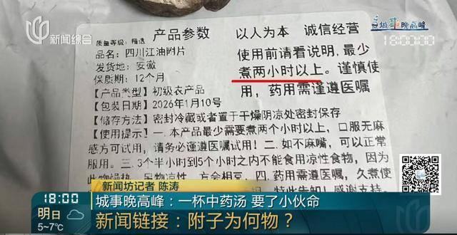 夏先生购买的这一包“四川江油附片”,外包装上虽然标注了要“煮2个小时以上”、“谨遵医嘱”等字样,但很重要的一点没有标注:就是附子含有剧毒的乌头碱,不熟悉药性或者根本不看说明书的患者就很容易放松警惕,极易误用,而乌头碱一旦中毒起病迅速、救治困难、死亡风险极高。