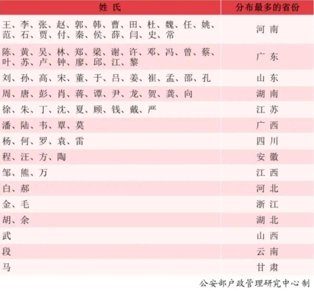 按人数排名的百家姓,马排第13位▼