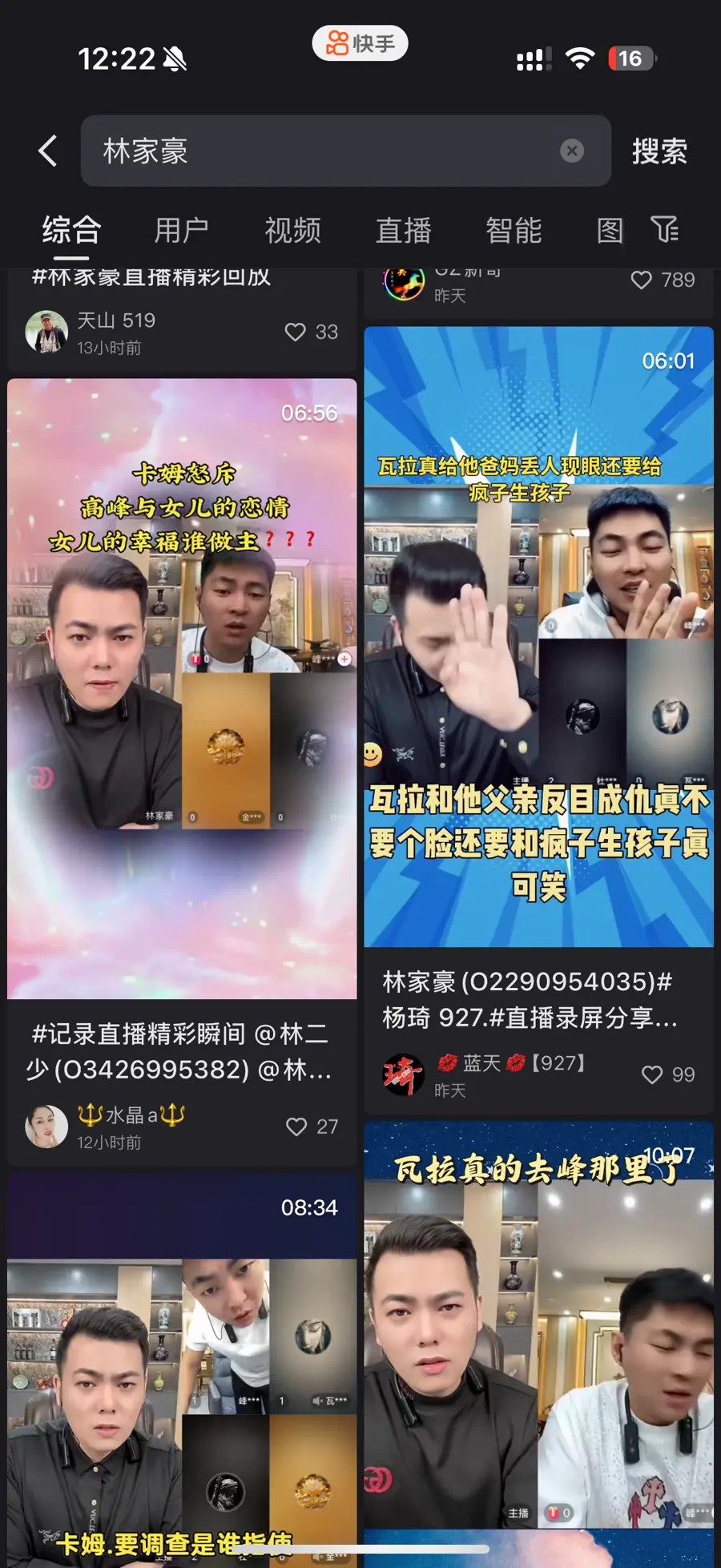 跟随温女士的指引,记者在快手平台点开了一名叫“林家豪”的主播的直播间。直播间里正在上演一出“豪门恩怨”大戏:一家之主卡姆为了拯救陷入爱情的女儿瓦拉和主播连线商量对策。观看了一会儿,记者的快手主页便被推送了更多类似的直播间,有豪门恩怨,有婆媳矛盾,也有主播声泪俱下讲自己的“凄惨身世”。而这些在老人子女和记者看来“假到不行”的直播,弹幕内容却尽是观众对剧情的认真探讨。在直播结束后,不少老年观众还会将本次直播的剧情做成“切片”放在自己主页,与其他观众讨论剧情发展,持续“追更”。