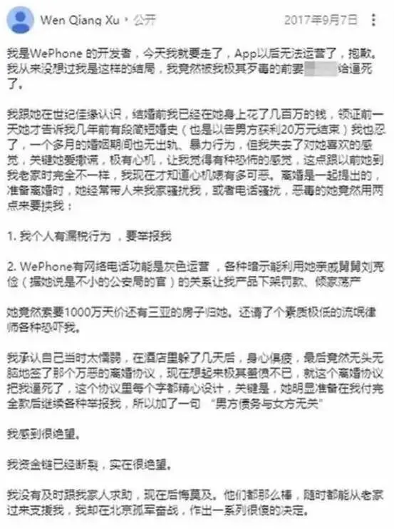 2017年9月7日,WePhone 创始人苏享茂跳楼自杀。(图/微博截图@苏享茂的姐姐)