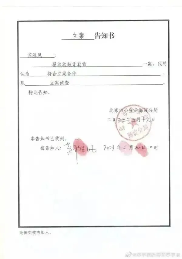 立案告知书。(图/微博截图@苏享茂的哥哥苏享龙)