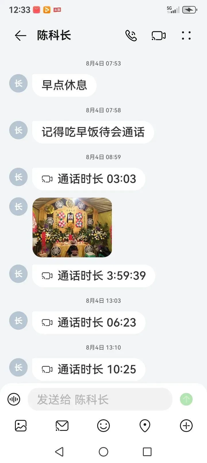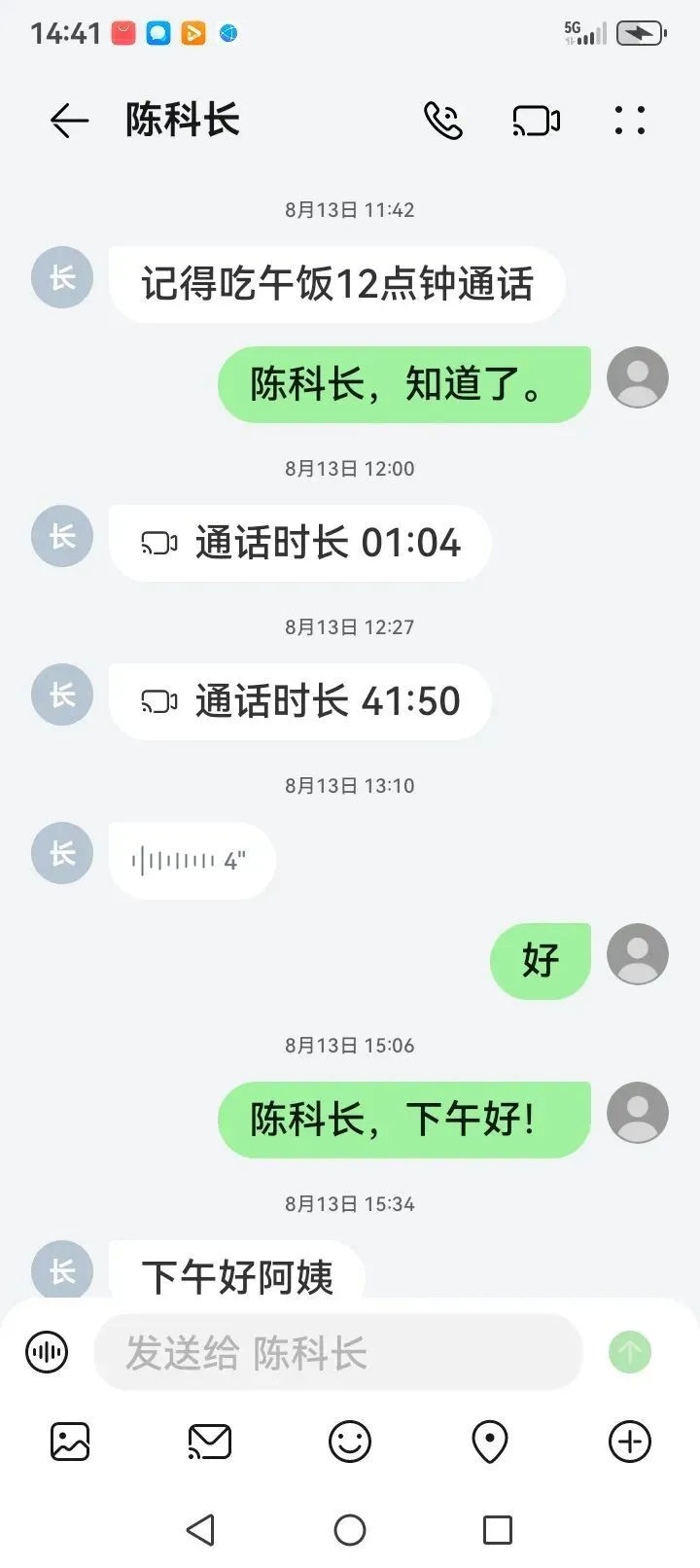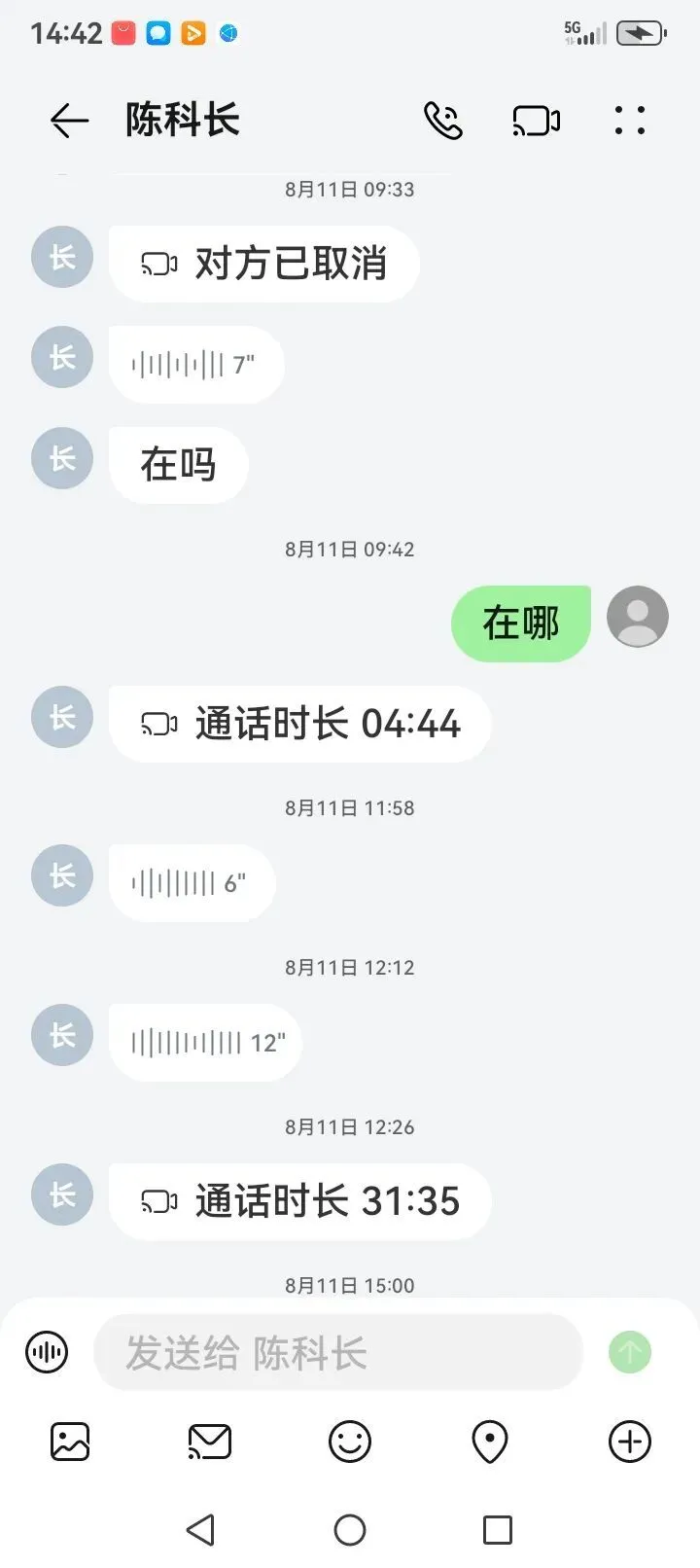 8月4日早上9点,骗子“陈科长 ”和我妈妈用华为手机进行视频通话,通话时间长达4个小时,骗子通过视频指导她操作: