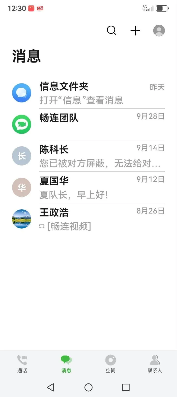 在这个手机里,有一个名为“畅连”的通讯工具,可以在两个华为手机之间进行文字聊天和视频通话。