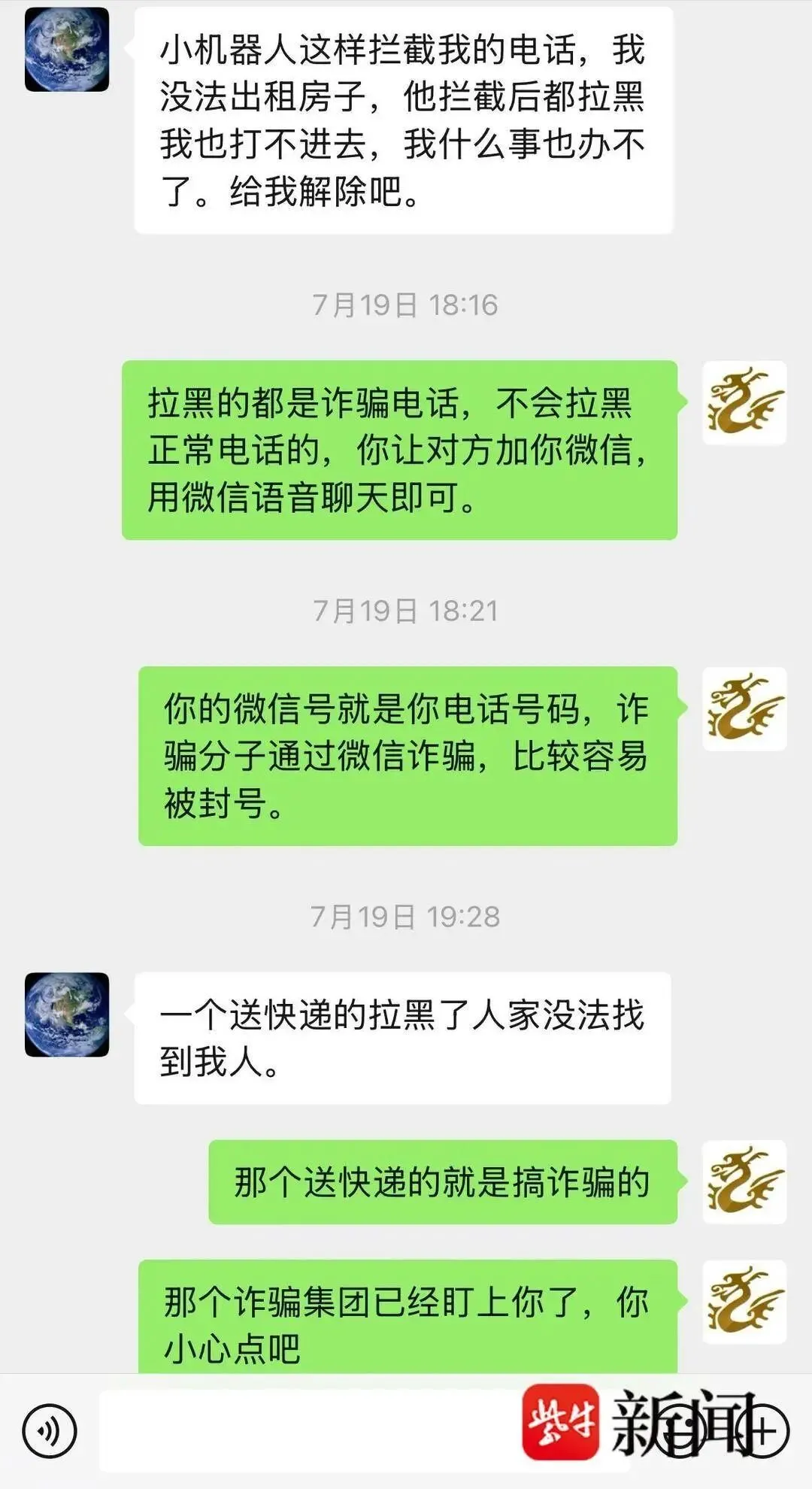 7月19日,回到西安的母亲告诉龙先生,因为手机设置的拦截电话,让她没办法出租房子,让儿子替她解除掉。龙先生坚持让母亲通过微信的方式联系租客,并提醒她已被诈骗集团盯上了,千万要小心。没想到,龙妈妈随后就去了一家手机店,让店里的销售员给解开了禁止接收陌生来电的功能。第一道防线就这样破了。