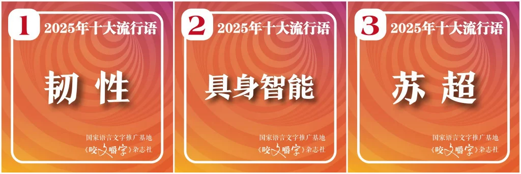 《咬文嚼字》主编黄安靖表示,编辑部沿袭一贯的“双标准”原则,即坚持社会学和语言学评选标准。“韧性”位居榜首,“苏超”“赛博对账”也高票入选,这说明这一年度的大事要事、社会热点,都得到了社会的广泛关注。