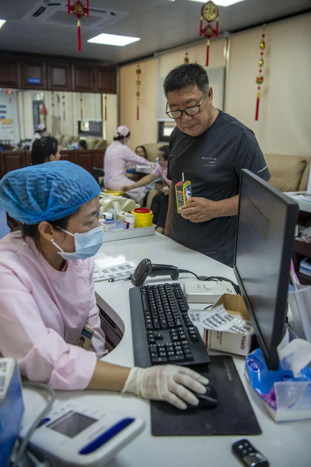 ▲海南琼海东风路献血点,护士为一位老人查阅献血资料 资料图 图据视觉中国