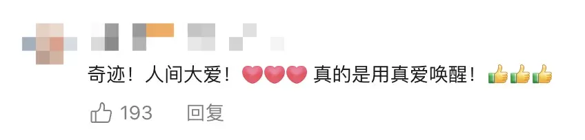 目前楚熙的情况正在一天天变好 虽然康复之路还需慢慢走 但刘楚熙的妈妈相信 在这样有爱的环境下 他一定会很快恢复健康重返校园 网友:看到他微笑的那一刻 眼泪就涌上了眼眶 这不仅是一个医学奇迹 更是母爱与集体温暖铸就的生命接力