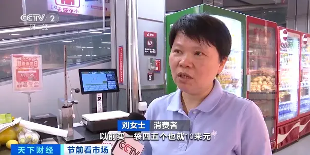 消费者 刘女士:以前买一袋四五个10元多,现在买两个就差不多10元了。