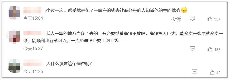 也有网友认为,高铁划分商务座、一等座、二等座,满足了乘客多样化需求,也增加了运力,不应诋毁。