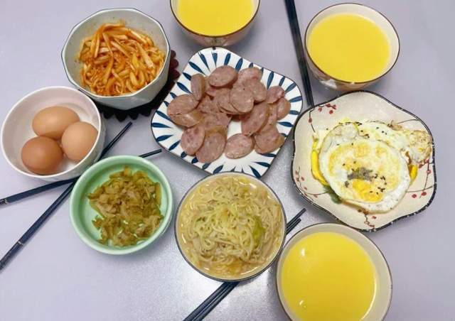 今天早上,像往常一样,我还没完全清醒,就闻到了从厨房飘来的香味。走到餐桌前一看,好家伙,又是丰盛的一桌。