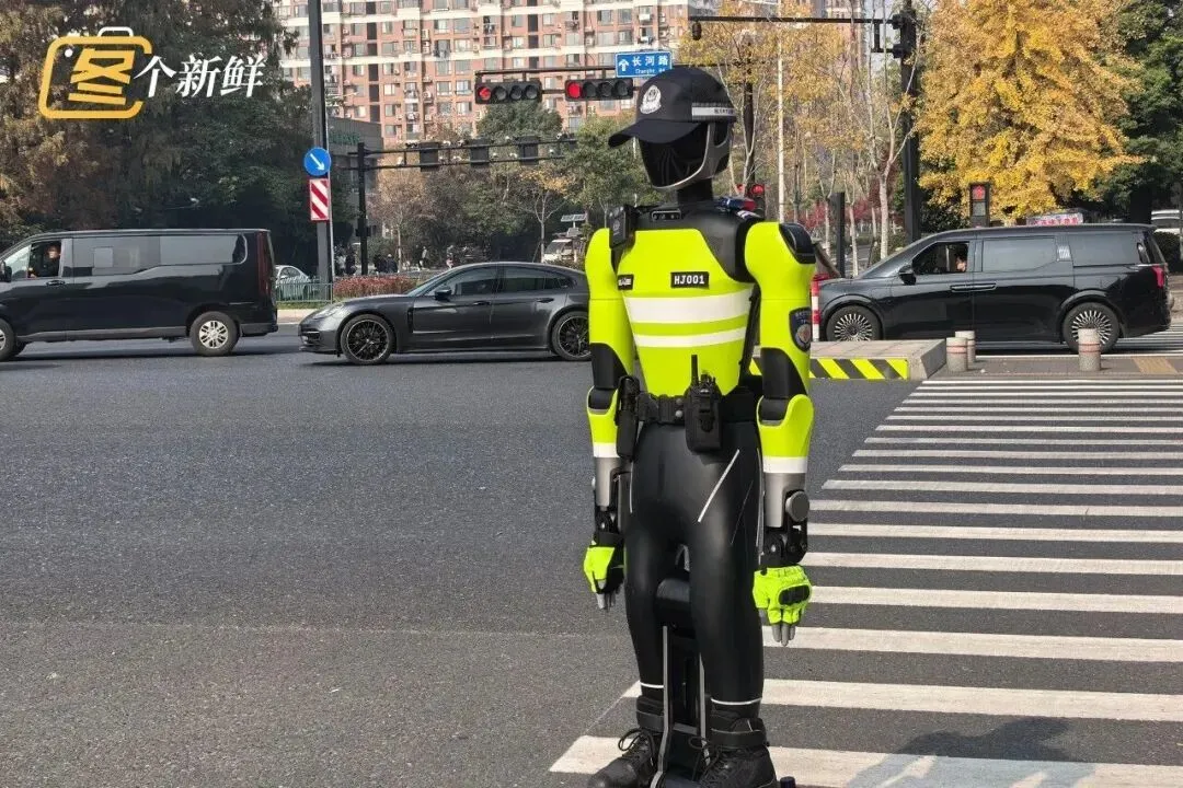 AI警员“杭行1号”在杭州街头辅助执勤 图源:“杭州发布”微信公众号