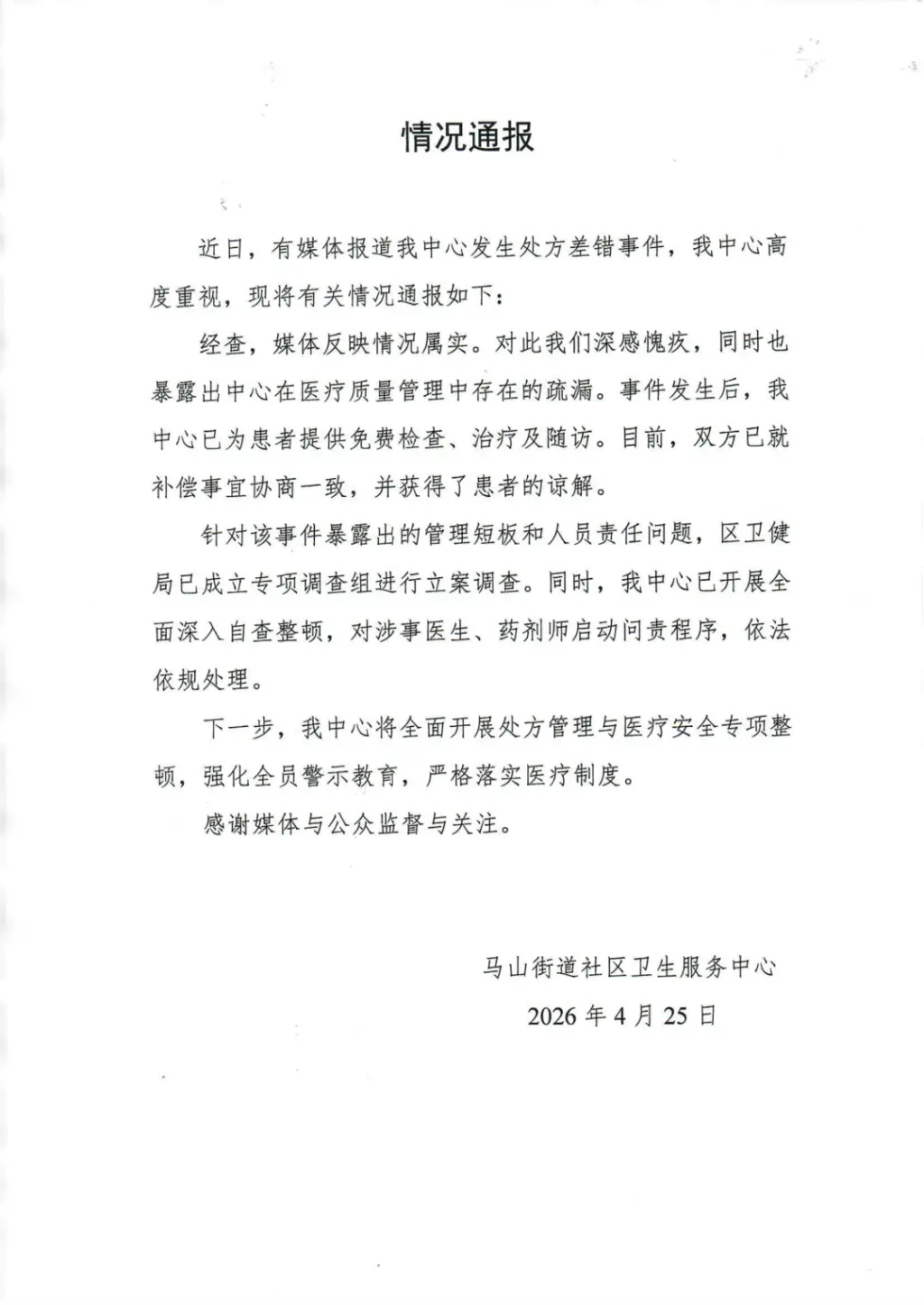 涉事卫生服务中心负责人回应:“这个确实是我们的错”。面对家属提出的10万元赔偿要求,卫生中心目前给出的补偿方案为2000元。因金额差距悬殊,院方建议通过专业机构鉴定来确定后续补偿标准,并承诺鉴定费用由医院承担。