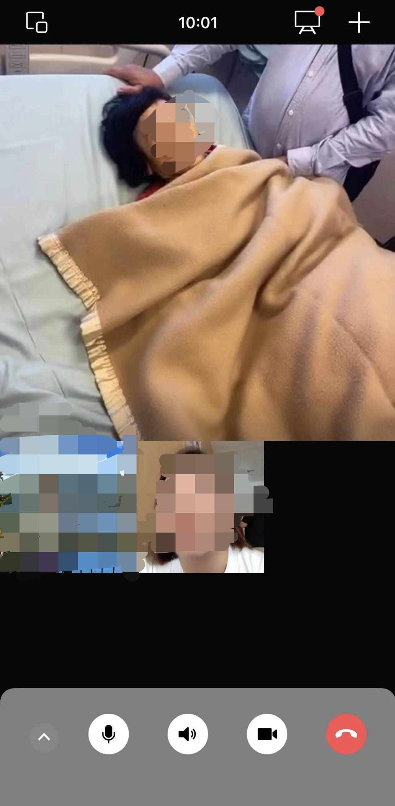 2024年5月15日,韩国时间11时许,家属通过视频通话了解方美婷的病情。受访者供图